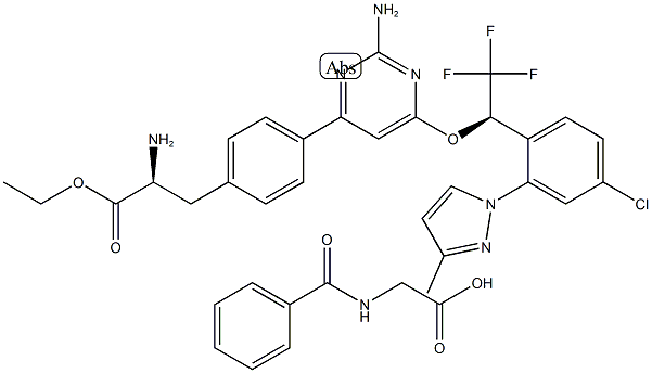 英文名稱:4-[2-Amino-6-[(1R)-1-[4-chloro-2-(3-methyl-1H-pyrazol-1-yl)phenyl]-2,2,2-trifluoroethoxy]-4-pyrimidinyl]-L-phenylalanine ethyl ester N-benzoylglycine salt CAS號:1137608-69-5 分子式:C36H35ClF3N7O6 分子量:754.1546096