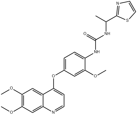 英文名稱:N-[4-[(6,7-Dimethoxy-4-quinolinyl)oxy]-2-methoxyphenyl]-N'-[1-(2-thiazolyl)ethyl]urea CAS號(hào):623142-96-1 分子式:C24H24N4O5S 分子量:480.54 EINECS號(hào):200-258-5